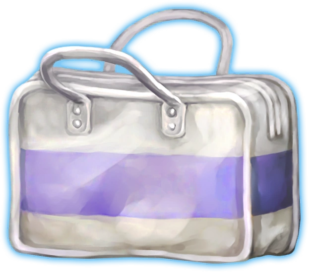 Students participating in physical education or clubs will use a vinyl bag.[14] It is white, with a purple stripe running horizontally across the center.